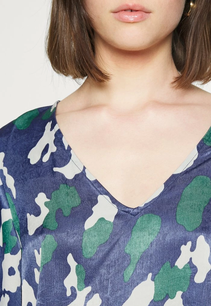 - Neckline: Low-cut v-neck
